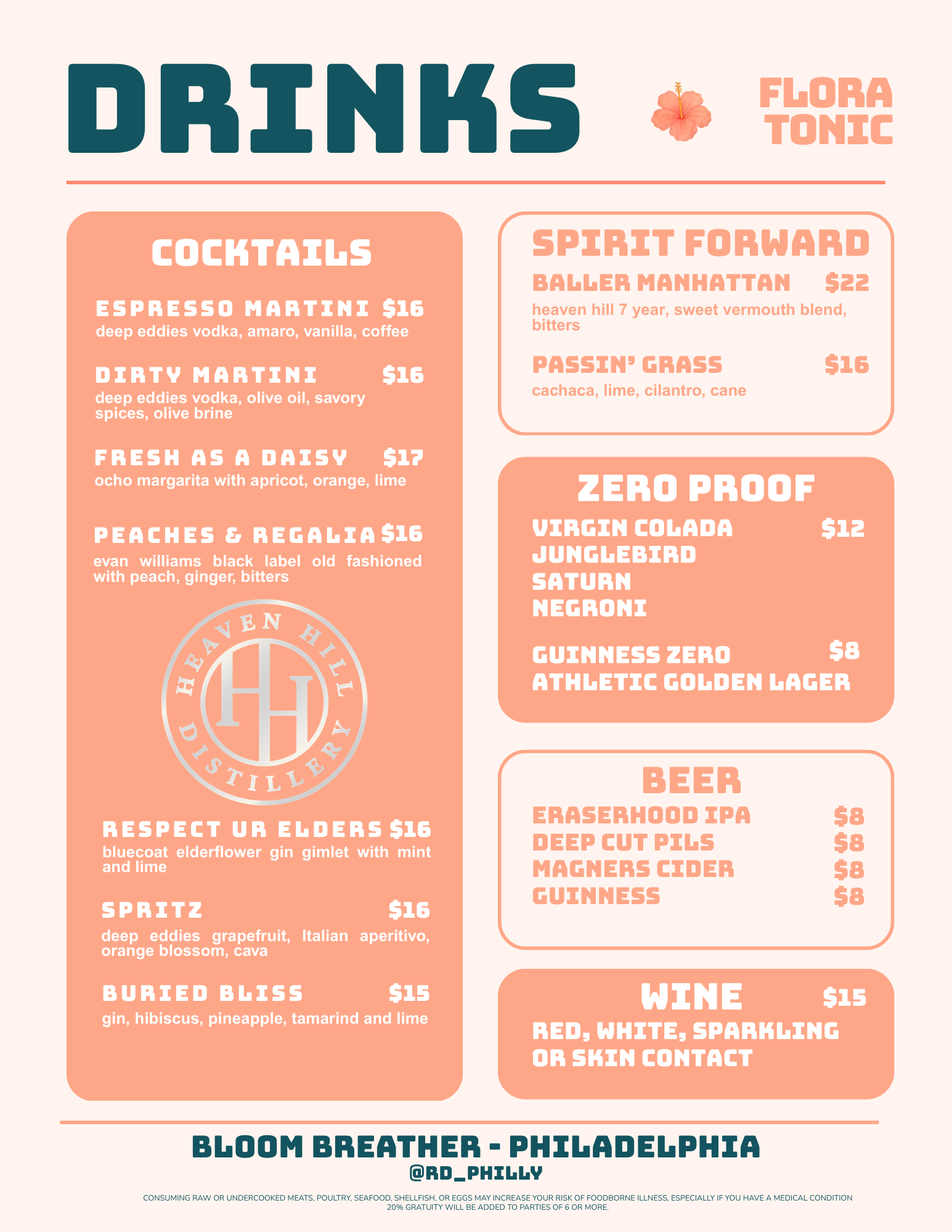Current Cocktail Menu